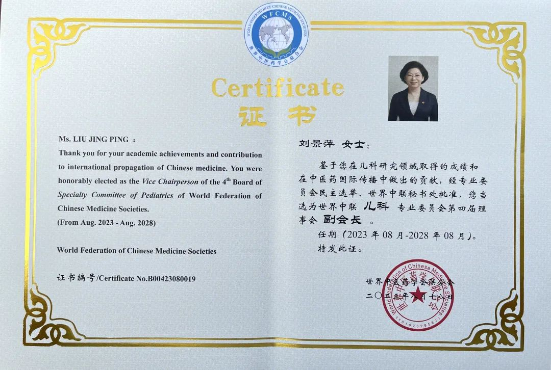 MK体育药业集团党委书记、董事长刘景萍当选世界中医药学会联合会儿科专业委员会第四届理事会副会长